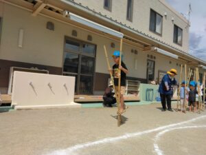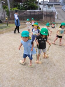 お家の方と一緒に作った竹ぽっくりも上手に乗れるようになりました✨