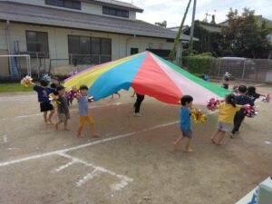 クラスのみんなで力を合わせてパラバルーンも楽しんでいます😊