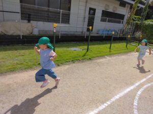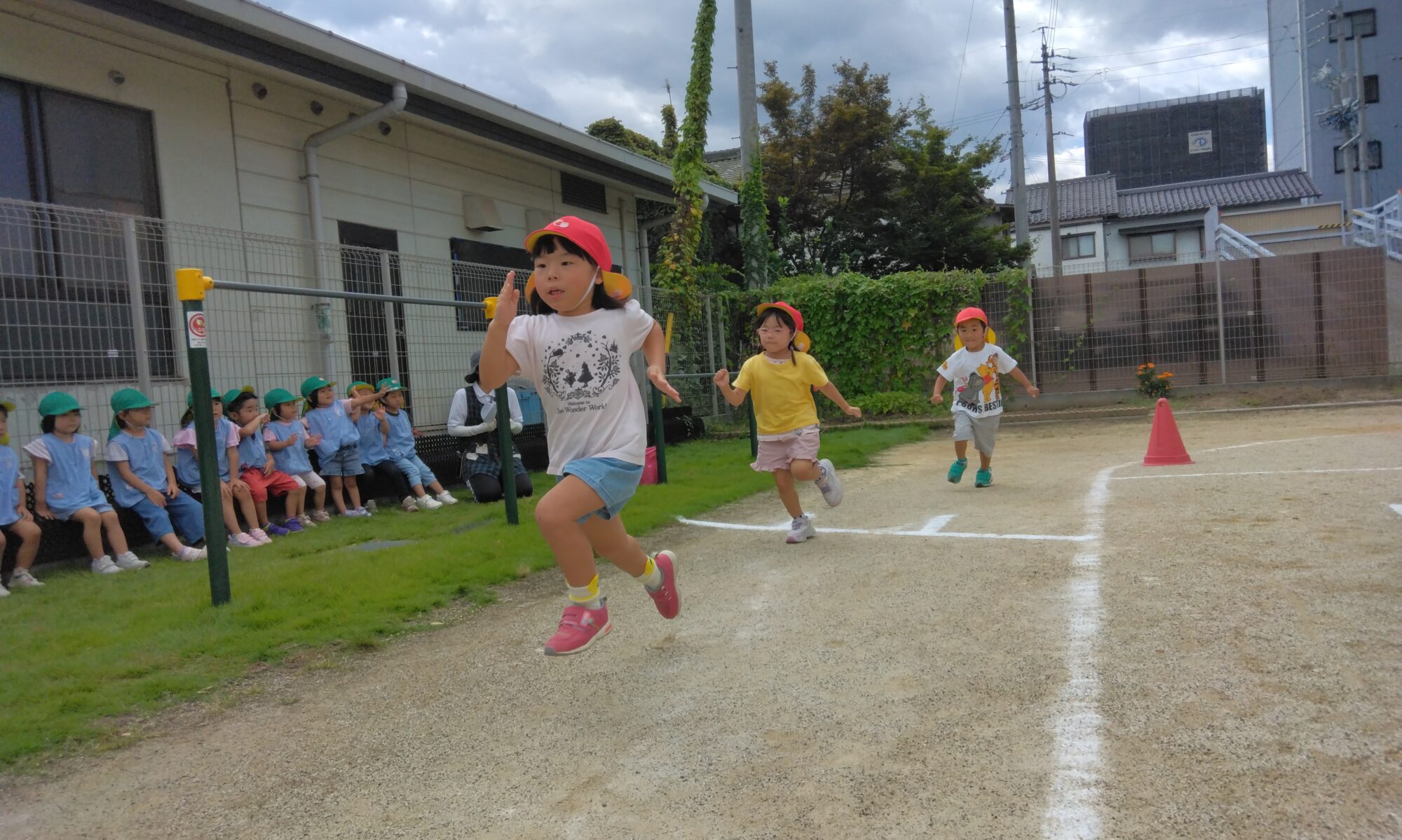 かけっこではお友達と一緒に走るのが楽しい様子です。