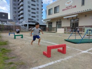 サーキット遊びでは、鉄棒やハードル跳びに挑戦!