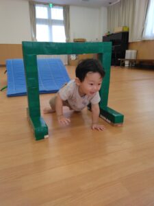 トンネルをくぐったり、マットの山を越えたりすることを楽しんでいます🎵