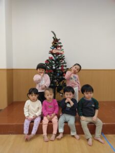 一日目はお友だちの飾りをみたり、先生たちのハンドベルの演奏を聴いたりしました♩