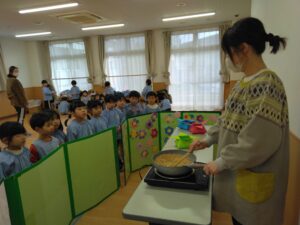 園長先生が豆まきの豆を炒ってくれました。