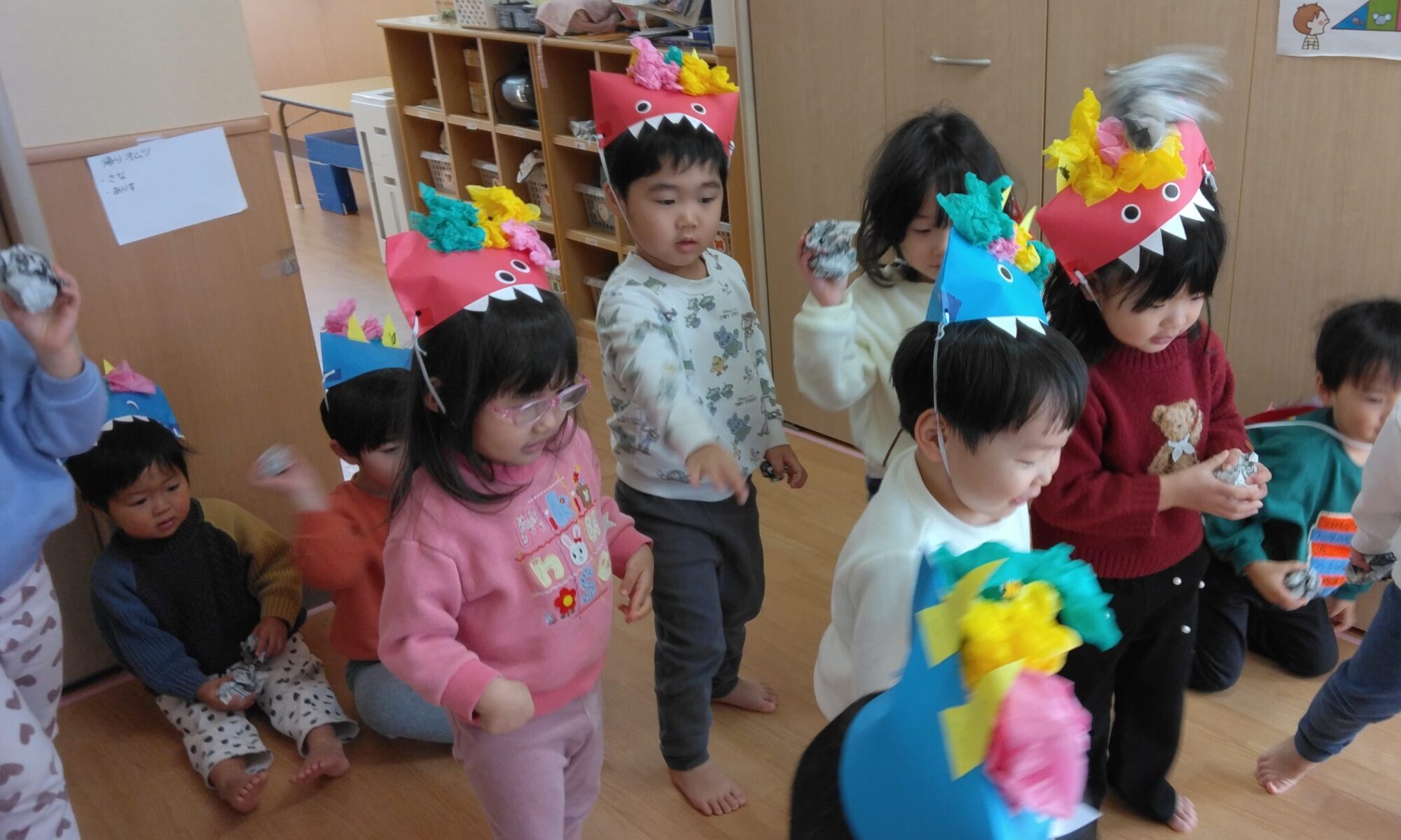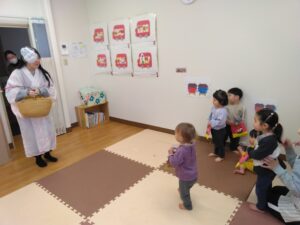 未満児さんは豆まきごっこを楽しみました😊