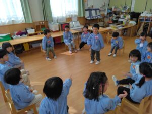 『4月からはこども園のことは任せたよ!』と伝えてもらい、『次は僕たち、私たちが頑張ろう!』とやる気満々になっている年中さんの子ども達です✨